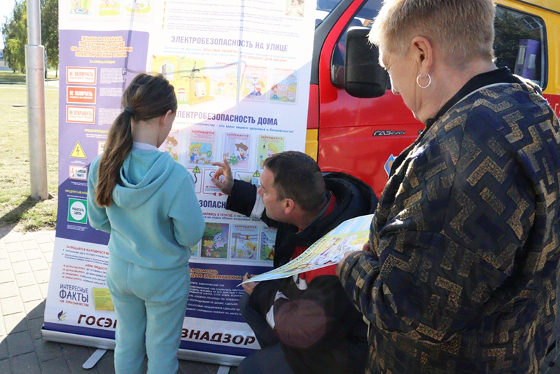 Работники районного отдела по ЧС совместно с активистами Белорусской молодежной общественной организации спасателей-пожарных, субъектами профилактики организовали работу интерактивных обучающих площадок, а также демонстрацию спецоборудования и техники. Каждый желающий смог отработать навыки вызова экстренных служб, оказания первой доврачебной помощи, вспомнить правила безопасности при эксплуатации электрических приборов и газового оборудования, правила эвакуации из зданий.