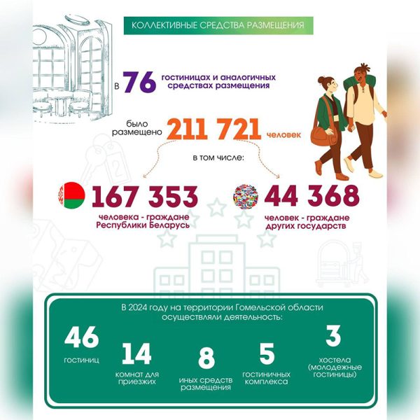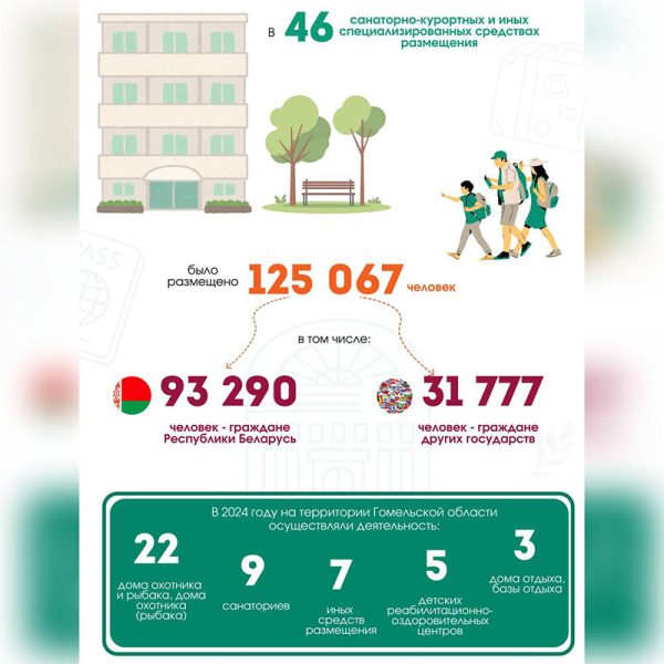В 76 гостиницах и аналогичных объектах размещения в 2024 году отдохнули более 211 тысяч человек, 44 тысячи из которых – иностранцы. Санатории юго-восточного региона за 12 месяцев посетили 125 тысяч туристов.