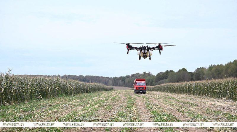 Главе государства показали технологию десикации дронами. Это процесс предуборочного высушивания растений, который позволяет минимизировать потери и оптимизировать сбор урожая. Дроны используются для десикации рапса, подсолнечника, кукурузы, сои, зерновых и зернобобовых, что позволяет равномерно наносить десиканты даже на влажной почве.