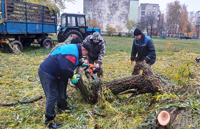 В рамках республиканского субботника депутатский корпус во главе с председателем райсовета Сергеем Халдаем, члены Молодежного совета, жители Коммунара трудятся на удалении аварийных деревьев на территории Коммунара. Участники отмечают, что таким образом они устраняют опасность, ведь деревья росли в зоне жилой застройки и в местах общего пользования.