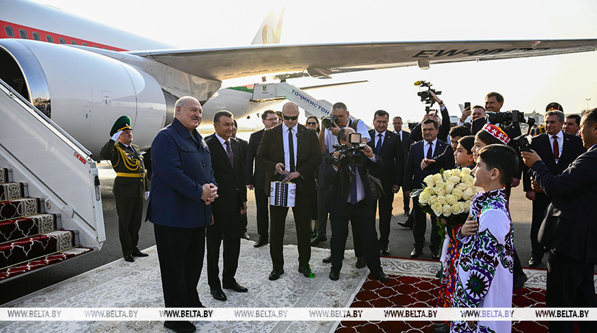 В аэропорту Душанбе Александра Лукашенко встречали премьер-министр Таджикистана Кохир Расулзода, министр иностранных дел Беларуси Максим Рыженков, Посол Беларуси в Таджикистане Виктор Денисенко и другие официальные лица.