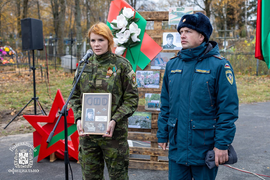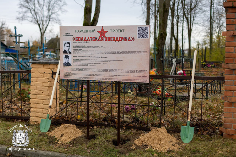 В рамках народного проекта Белорусского фонда мира «Солдатская звездочка» на кладбище установили информационную табличку с именем летчика и QR-кодом, пройдя по которому можно узнать о его подвиге.