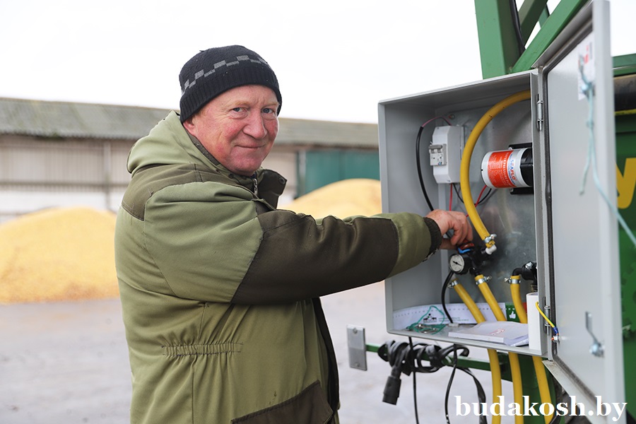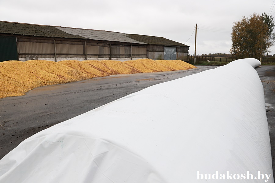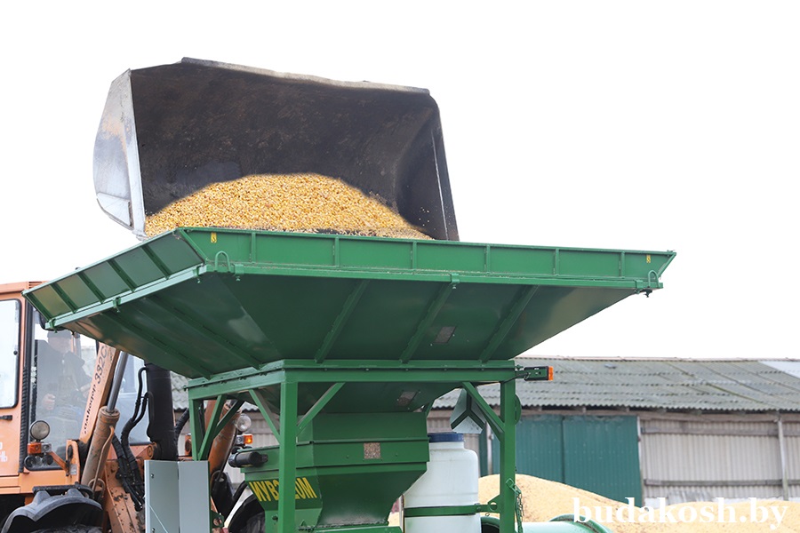 Под уборку на зерно в сельхозпредприятии отведен 201 га площадей кукурузных полей. 85 га пройдены, и уже первые десятки тонн прошли через процесс плющения на специальном оборудовании. Новый измельчитель-упаковщик влажного зерна ИУВ 3-20М производства ОАО «Управляющая компания холдинга «Бобруйскагромаш» приобрели два месяца назад за счет бюджетного финансирования.