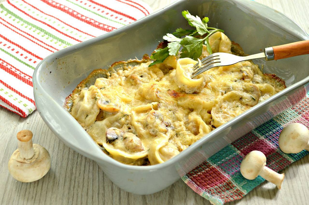 1. На сливочном масле обжариваем пельмени до золотистости со всех сторон, накрываем крышкой. Перекладываем в форму для запекания.