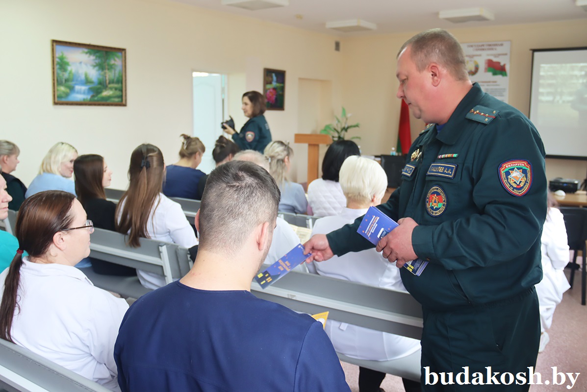 В рамках встречи присутствующие посмотрели тематический видеоролик, после чего сотрудники РОЧС раздали им памятки.