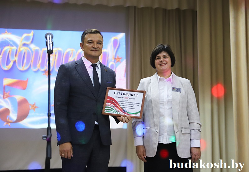 К поздравлениям присоединились председатель Уваровичского сельисполкома Виталий Пантелеенко, начальник отдела образования райисполкома Надежда Романова, председатель районной организации Белорусского профессионального союза работников образования и науки Елена Парфененко.