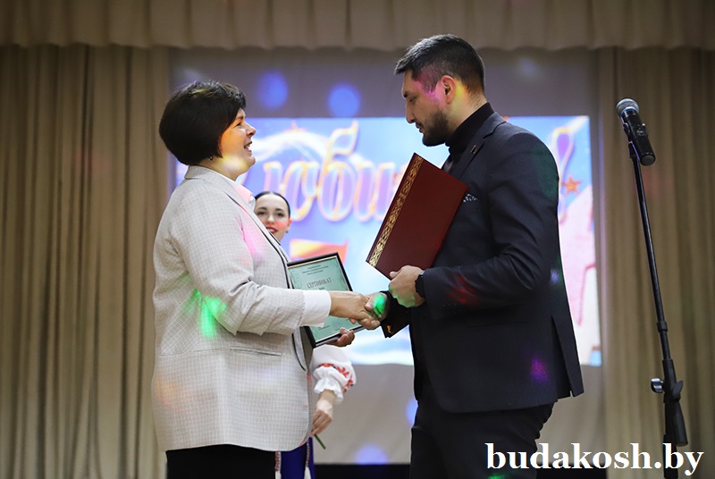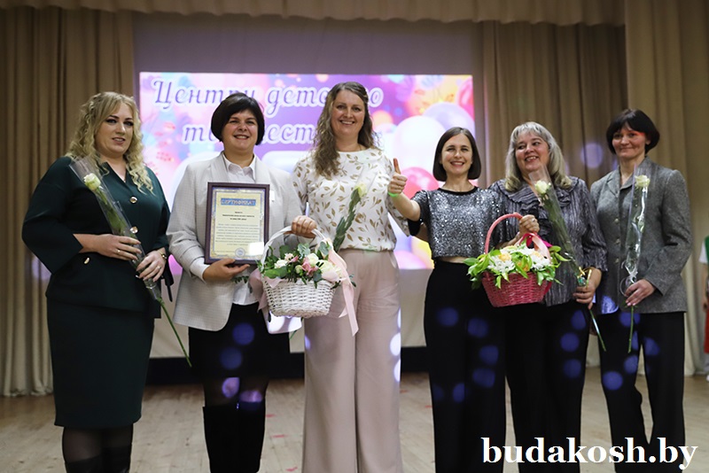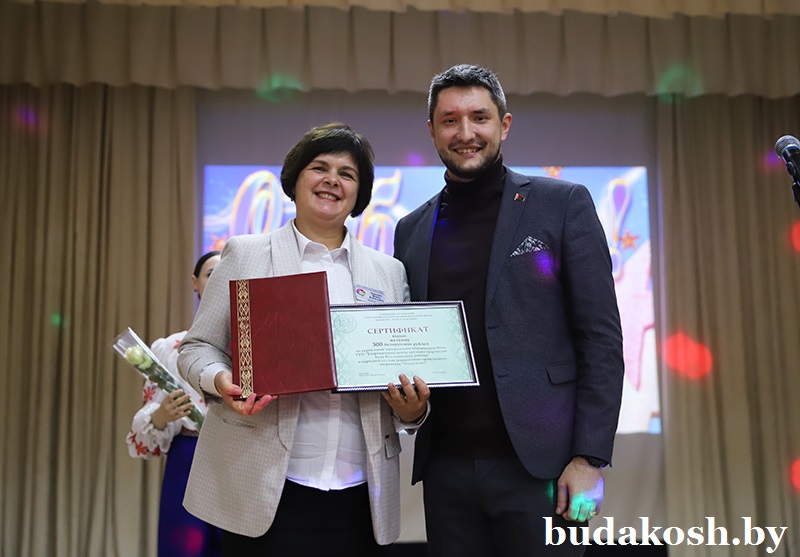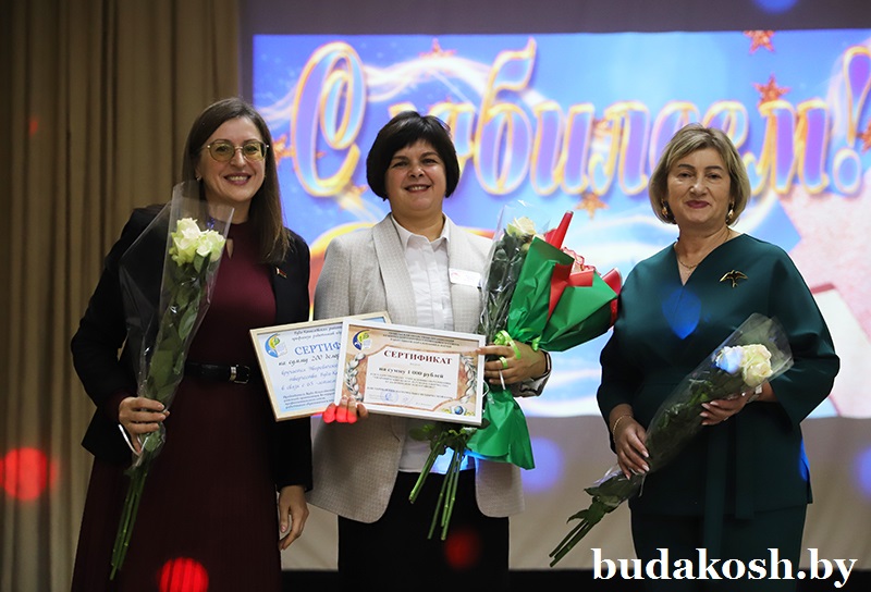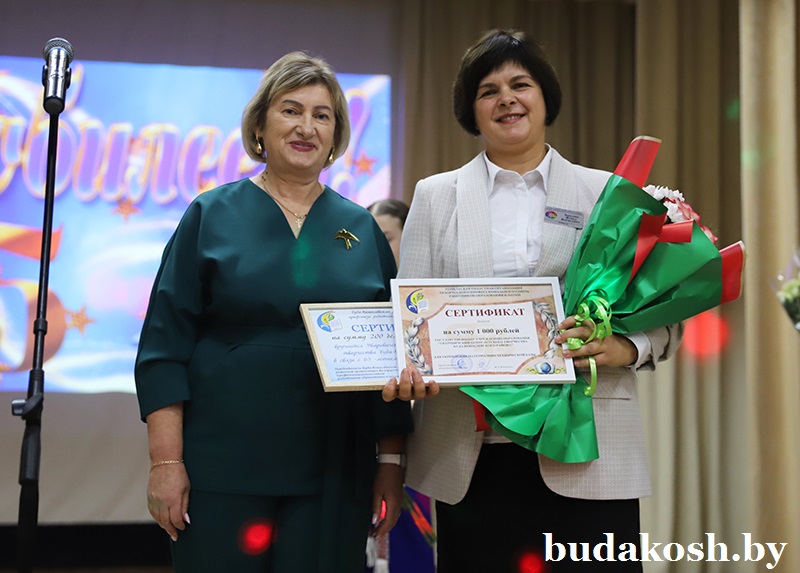 Надежда Романова вручила Почетную грамоту отдела образования райисполкома руководителю народной студии декоративно-прикладного творчества «Чараўнiцы» Светлане Крикун за профессионализм, творческую инициативу, большой вклад в дело сохранения и распространения лучших традиций белорусской национальной культуры и денежный сертификат центру народного творчества. Елена Парфененко от имени Гомельской областной и районной организаций Белорусского профессионального союза работников образования и науки вручила студии «Чараўнiцы» подарочные сертификаты.