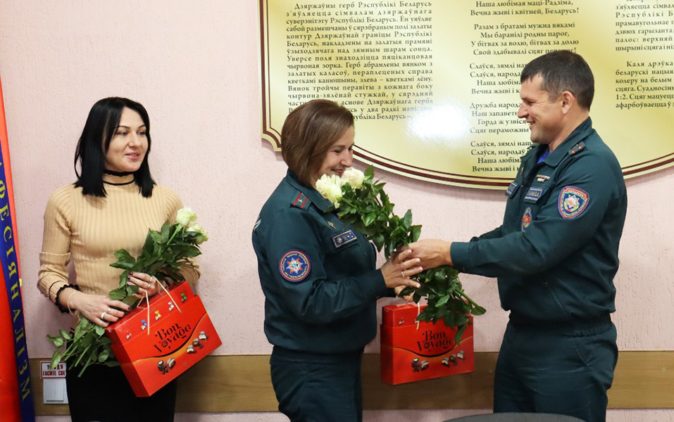 В Буда-Кошелевском районом отделе по чрезвычайным ситуациям состоялось офицерское собрание. Спасатели поздравили сотрудниц отдела с Днем матери, вручив им букеты цветов и памятные подарки.