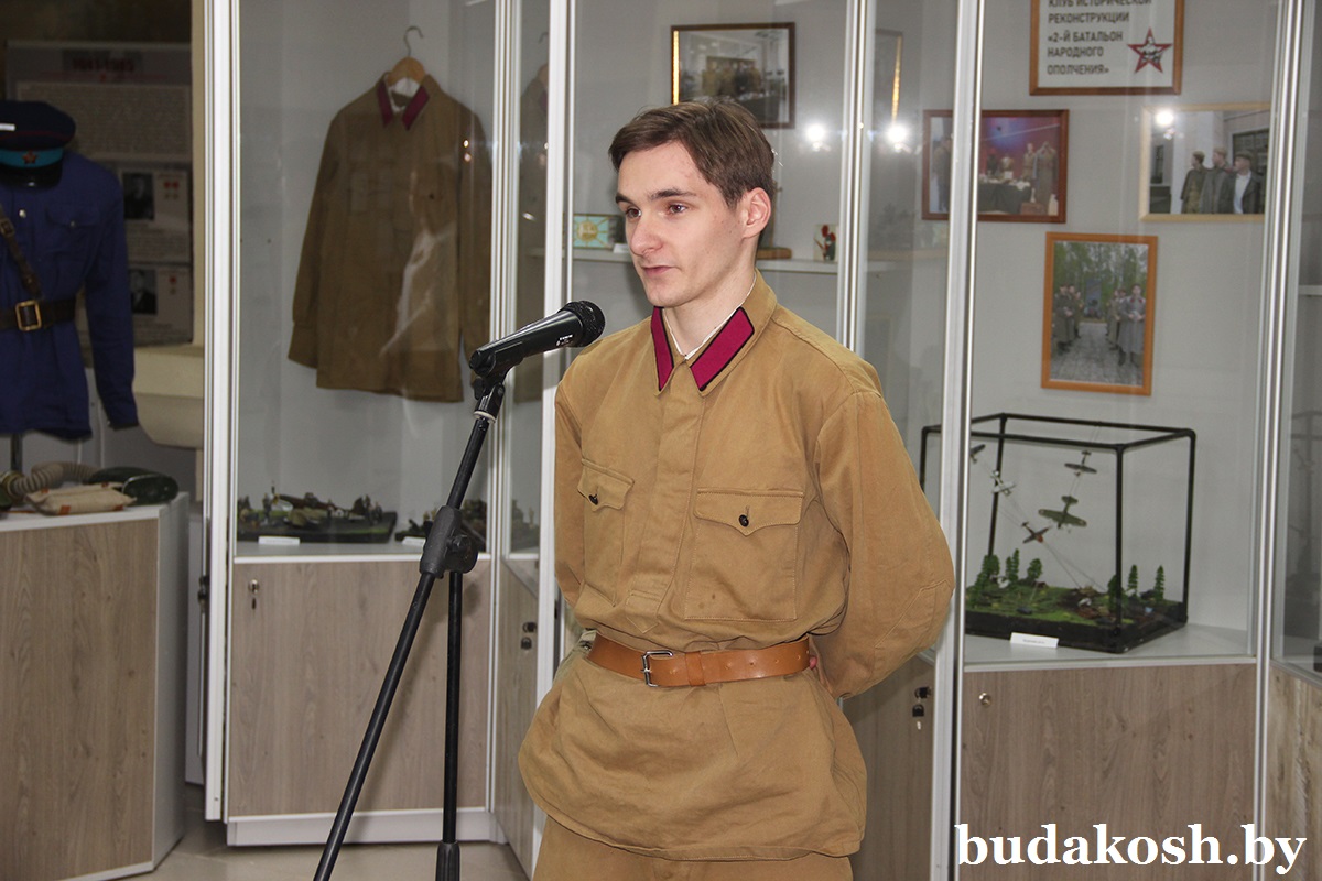 Декан факультета истории и межкультурных коммуникаций ГГУ им. Ф. Скорины Станислав Черепко рассказал, что создатели экспозиции – члены созданного на факультете клуба исторической реконструкции «2-й батальон народного ополчения Гомеля» – принимают участие в исторических реконструкциях боев, полевых выходах по местам воинской славы. Их также можно увидеть на раскопках жертв геноцида белорусского народа. Станислав Александрович акцентировал, что никогда нельзя забывать о зверствах, которые фашисты творили на белорусской земле. Только такими выставками, рассказами очевидцев о войне, фильмами сегодня можно сохранить историческую правду, не позволив ее переписать.