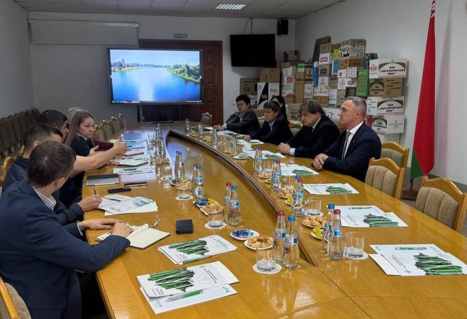 Председатель концерна «Беллесбумпром» Александр Пшенный и генеральный директор ОАО «Светлогорский ЦКК» Юрий Крук обсудили с партнерами из Омана вопросы деятельности предприятия, ход строительства комбината.