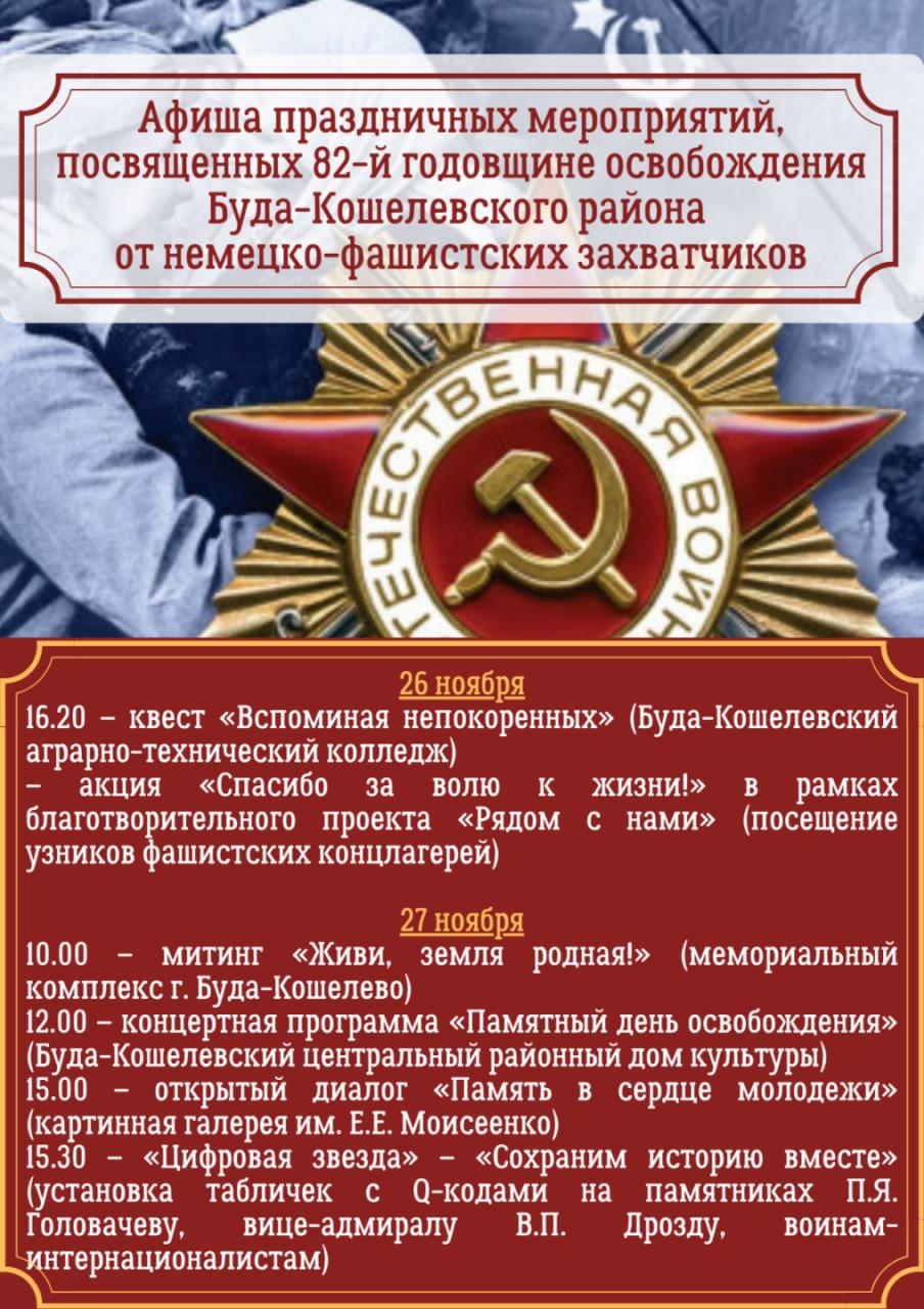 Домой Анонс Афиша праздничных мероприятий, посвященных 82-й годовщине освобождения Буда-Кошелевского района от немецко-фашистских захватчиков АнонсНаша памятьОбщество Афиша праздничных мероприятий, посвященных 82-й годовщине освобождения Буда-Кошелевского района от немецко-фашистских захватчиков По Авангард - 24.11.2025 258 0