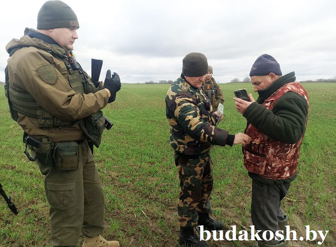 Первым подлежал проверке охотничий коллектив, добывший одну особь лося. У охотников проверили соответствующие документы, провели разъяснительные беседы и раздали тематические буклеты. После этого отправились в охотугодья Буда-Кошелевского района. Погода была хорошая. То тут, то там встречались охотники и рыбаки. Одному гражданину было объявлено устное замечание ввиду того, что охотился он ближе 200 м от крайнего строения сельского населенного пункта. В соответствии с правилами охоты это является нарушением правил безопасности.