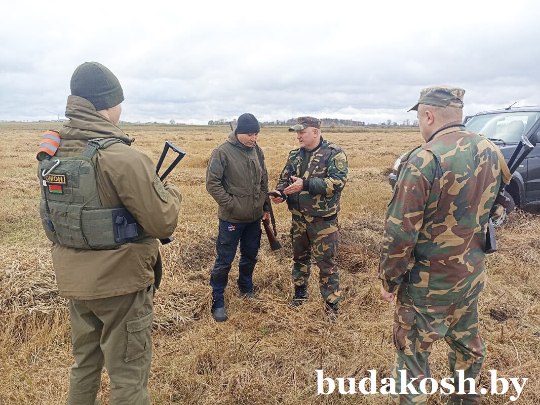Для усиления полевой группы, а также в связи с открытием охоты с 1 ноября на пушные виды охотничьих животных и активным проведением коллективных охот в рамках взаимодействия были привлечены сотрудники ОМОН УВД Гомельского облисполкома.