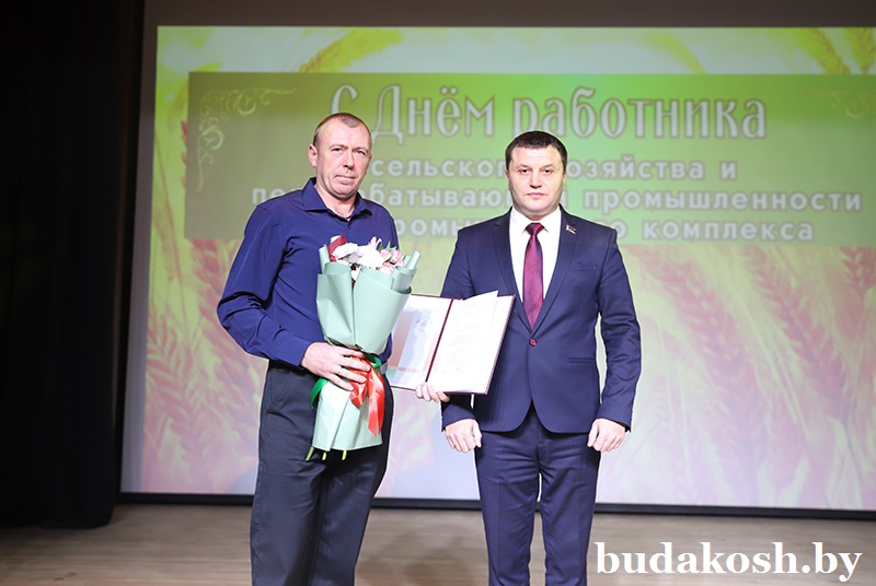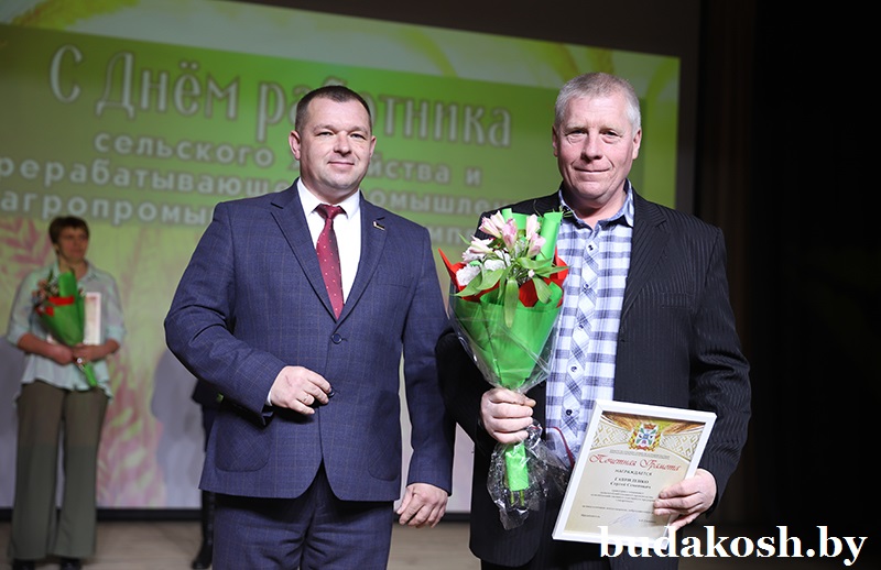 Тружеников села поздравил с профессиональным праздником, поблагодарил за трудолюбие, добросовестность, верность выбранной профессии и вручил заслуженные награды председатель районного Совета депутатов Сергей Халдай. Почетными грамотами районного Совета депутатов награждены: тракторист-машинист сельскохозяйственного производства филиала ОАО «Гомсельмаш» «Юбилейный-Агро» Василий Абраменко, слесарь-ремонтник ОАО «Буда-Кошелево-агросервис» Сергей Сивицкий. Благодарности районного Совета депутатов объявлены: трактористу-машинисту сельскохозяйственного производства РУП «Белоруснефть-Особино» Дмитрию Луткову, слесарю по ремонту сельскохозяйственных машин и оборудования ОАО «Экспериментальная база «Пенчин» Александру Казаку, трактористу-машинисту сельскохозяйственного производства КСУП «Кривск» Денису Зиновенко.