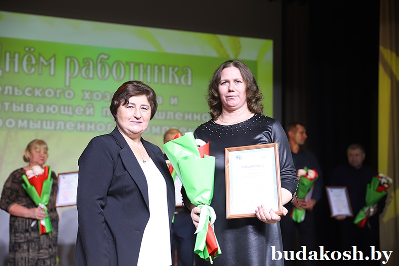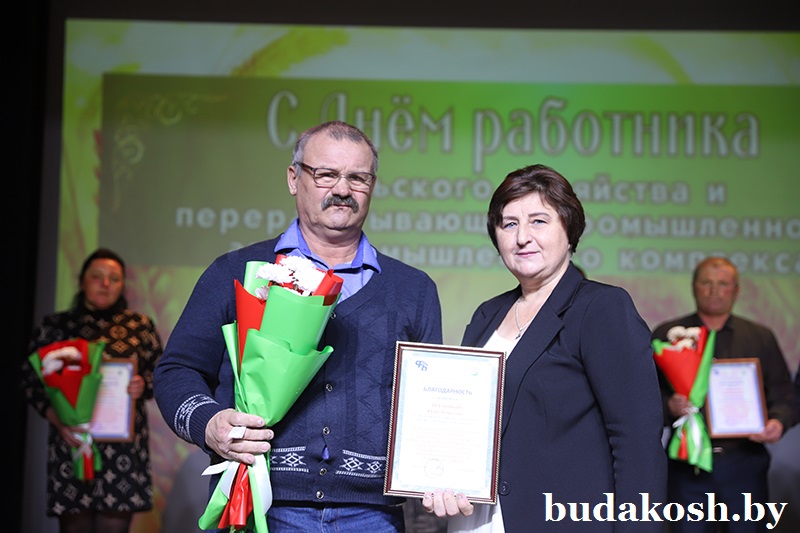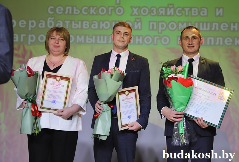 Почетной грамотой районного исполнительного комитета награждена заместитель начальника управления сельского хозяйства и продовольствия райисполкома Наталья Мацудова. Благодарности районного исполнительного комитета объявлены: главному специалисту отдела механизации и растениеводства управления сельского хозяйства и продовольствия райисполкома Артему Кучерову, главному специалисту отдела экономики управления сельского хозяйства и продовольствия райисполкома Алесе Кириленко, оператору животноводческих комплексов и механизированных ферм ОАО «Николаевка» Сергею Минову, животноводу филиала ОАО «Гомсельмаш» «Юбилейный-Агро» Ивану Козлову, трактористу-машинисту сельскохозяйственного производства СУП «Андреевка» Николаю Михневичу, слесарю-ремонтнику ОАО «Буда-Кошелево-агросервис» Ивану Коритько, трактористу-машинисту сельскохозяйственного производства КСУП «Губичи» Владимиру Дегтяренко, трактористу-машинисту сельскохозяйственного производства СУП «Морозовичи-Агро» Игорю Парфененко.
