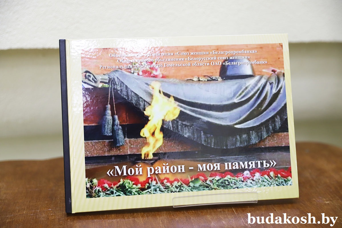Символично, что в год 80-летия Великой Победы и в преддверии 82-й годовщины освобождения Буда-Кошелевского района от немецко-фашистских захватчиков коллектив центра банковских услуг №315 в г.Буда-Кошелево Региональной дирекции по Гомельской области ОАО «Белагропромбанк» передал в дар историко-культурному центру района книгу «Мой район – мой проект». Одна из глав издания посвящена Будакошелевщине, в которой отображены сведения о памятных местах райцентра. Как отмечают банковские работники, помощь в предоставлении исторических материалов оказал педагог аграрно-технического колледжа, первый секретарь районного комитета Коммунистической партии Беларуси Владимир Азарушкин.