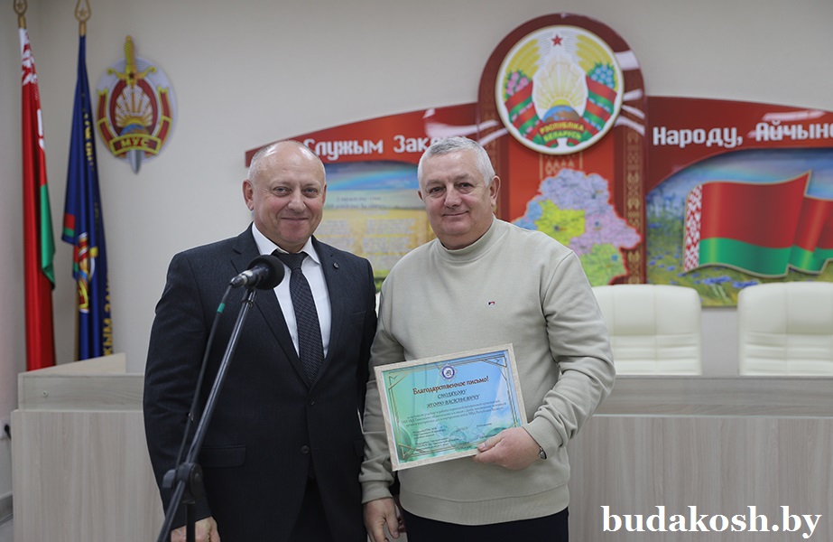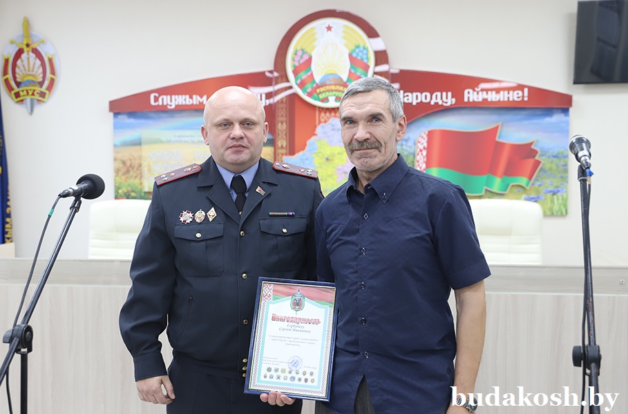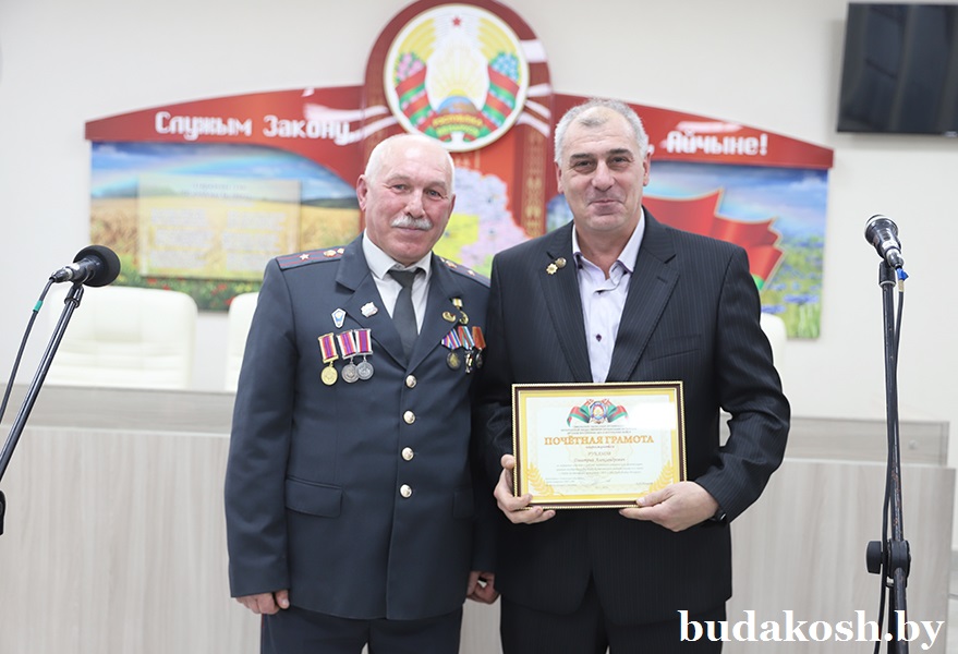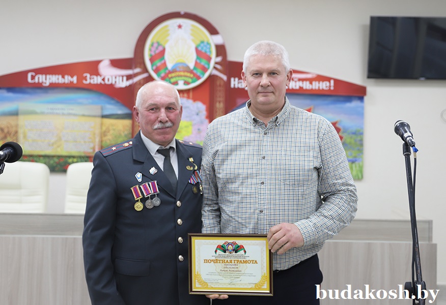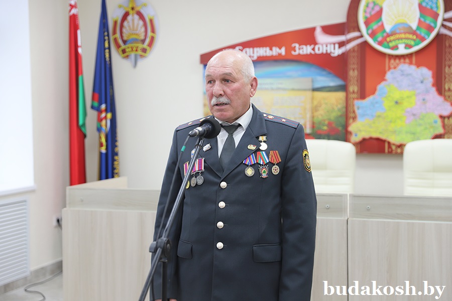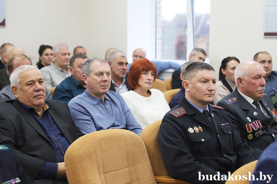Ветеранов органов правопорядка поздравили председатель районного Совета депутатов Сергей Халдай, начальник ОВД райисполкома полковник милиции Александр Мисников, прокурор района Андрей Комаров, начальник РОСК Дмитрий Близнец, исполняющий обязанности военного комиссара Буда-Кошелевского и Чечерского районов Павел Вергун, а также председатели советов ветеранов.