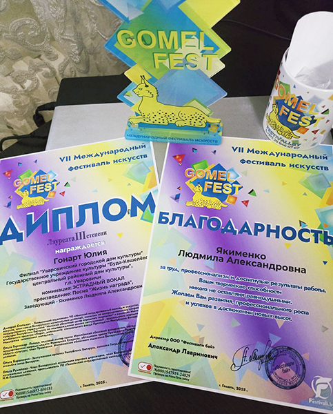 Не менее успешным было участие в VII Международном фестивале искусств «GOMEl FEST» и для Юлии Гонарт, режиссера Уваровичского городского дома культуры. В номинации «Эстрадный вокал» она удостоена диплома лауреата III степени. Заведующему филиалом «Уваровичский ГДК» Людмиле Якименко объявлена благодарность.