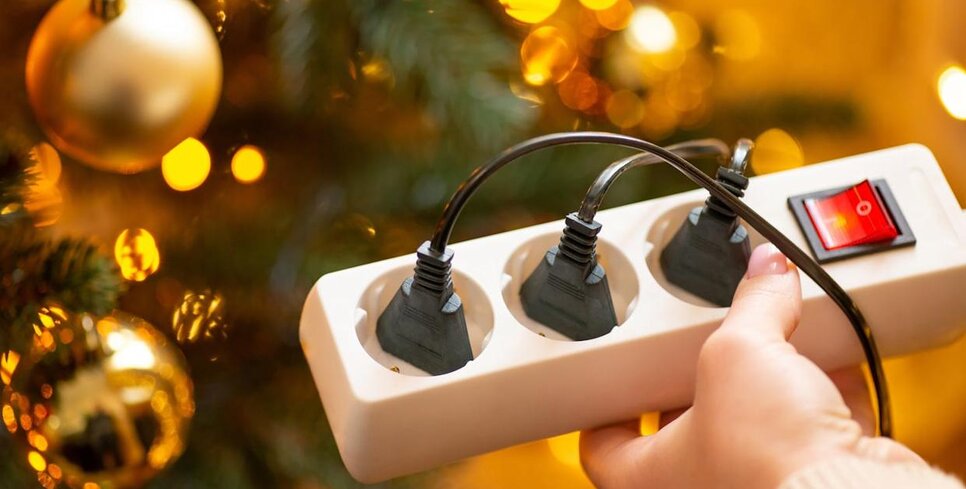 - Перед украшением объектов, жилья и праздничных елок необходимо визуально проверить состояние изоляции и контактов, поскольку потрескавшаяся, поврежденная изоляция проводов или провода, незащищенные изоляцией, могут стать причиной опасной электротравмы или возгорания.