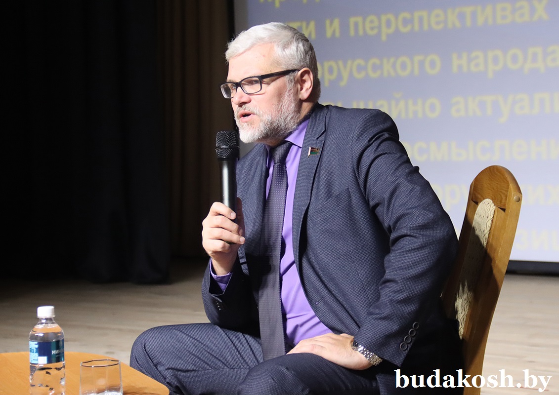 Вячеслав Данилович рассказал о формах белорусской государственности – исторической и национальной. Также спикер выделил основные исторические эпохи, которые чаще всего искажаются и фальсифицируются. По его словам, нам пытаются внушить отрицание общих корней у белорусов, русских и украинцев. Но специалисты – антропологи, историки – прекрасно знают, что у этих трех народов они общие.