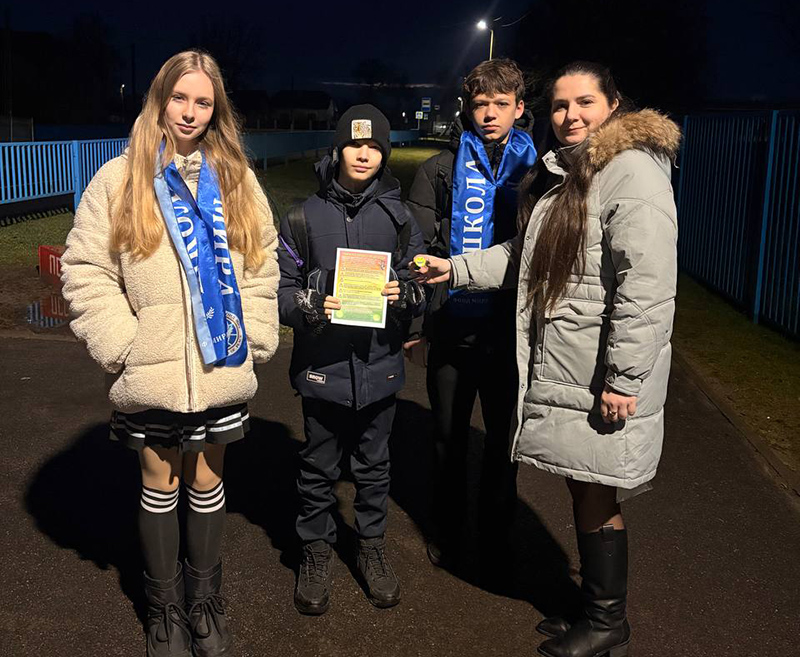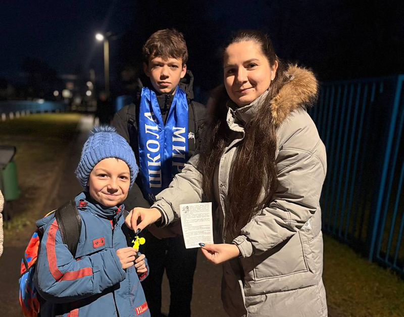Перед началом занятий специалист отдела образования Оксана Чечко и волонтеры Школы мира напомнили ребятам о необходимости обозначать себя фликерами в темное время суток и вручили им памятки о правилах дорожного движения.