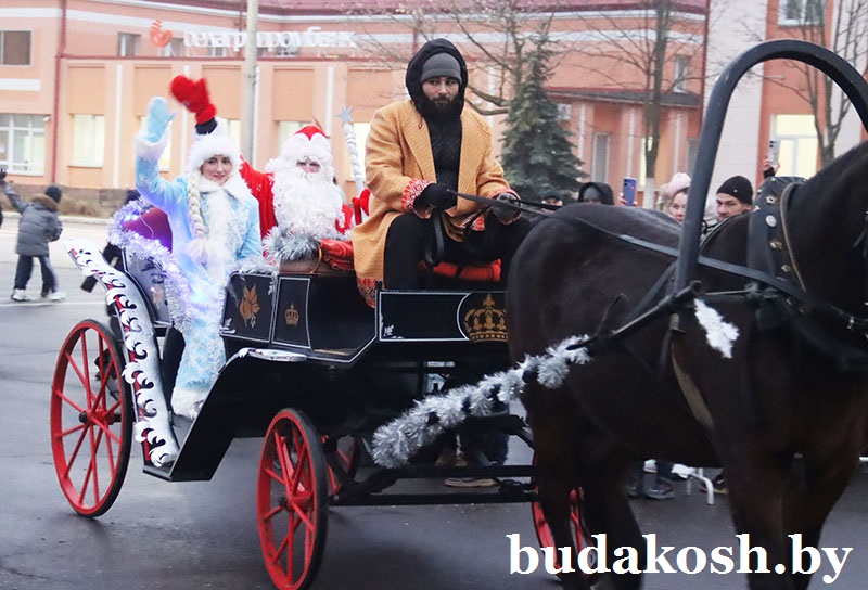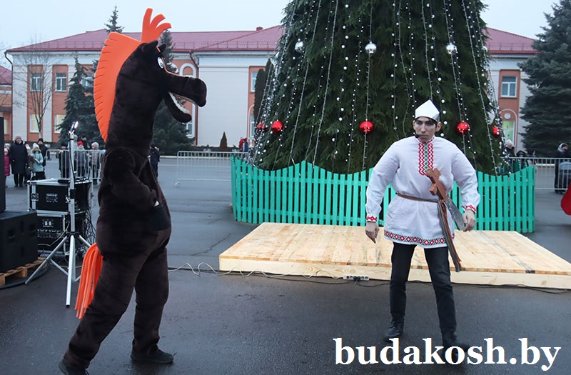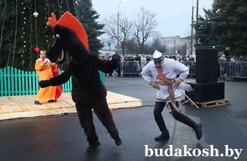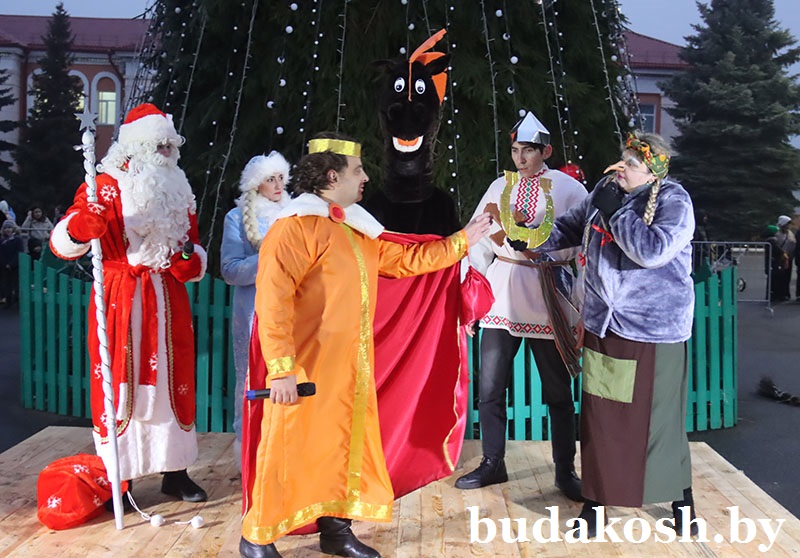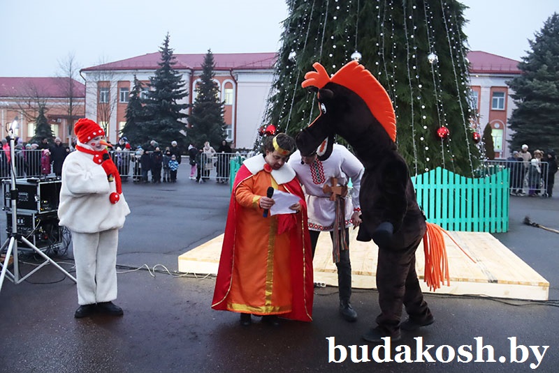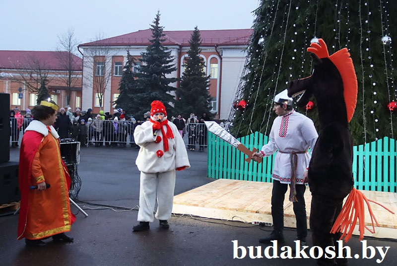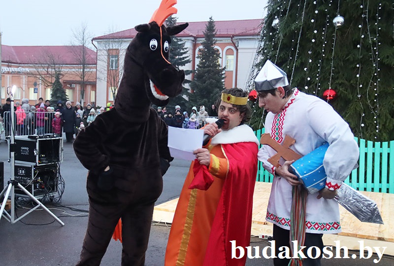 Главная елка района не только засверкала сотнями новогодних огней, но и дала старт всем новогодним мероприятиям. Активными участниками настоящего праздника стали дети и взрослые. Песни, хороводы, игры, сказочные персонажи – все создавало атмосферу торжества и чуда. Дед Мороз и Снегурочка прибыли на площадь на символе наступающего года. Не обошлось, как водится, без проказ Бабы Яги. Но все злоключения при помощи богатыря Алеши, князя и коня Юлия были успешно преодолены, и волшебная подкова нашлась. Она будет оберегать наш город и приносить ему удачу весь следующий год.