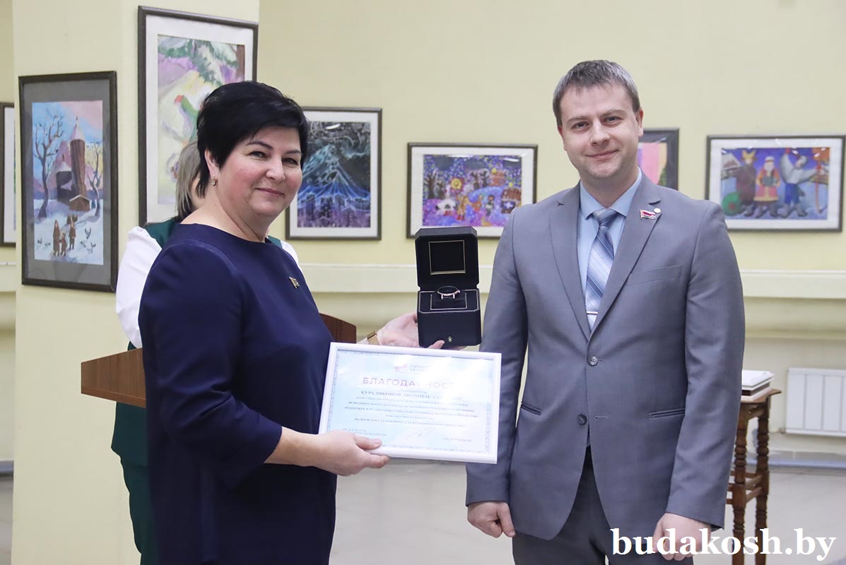 По поручению председателя РОО «Патриоты Беларуси» Николая Зарубицкого лидер районной организации Евгений Агажельский объявил благодарность РОО за активную гражданскую позицию, поддержку в реализации социально значимых проектов и инициатив заместителю председателя райисполкома Людмиле Кураликовой.
