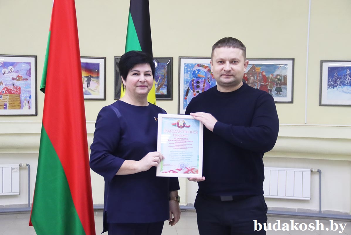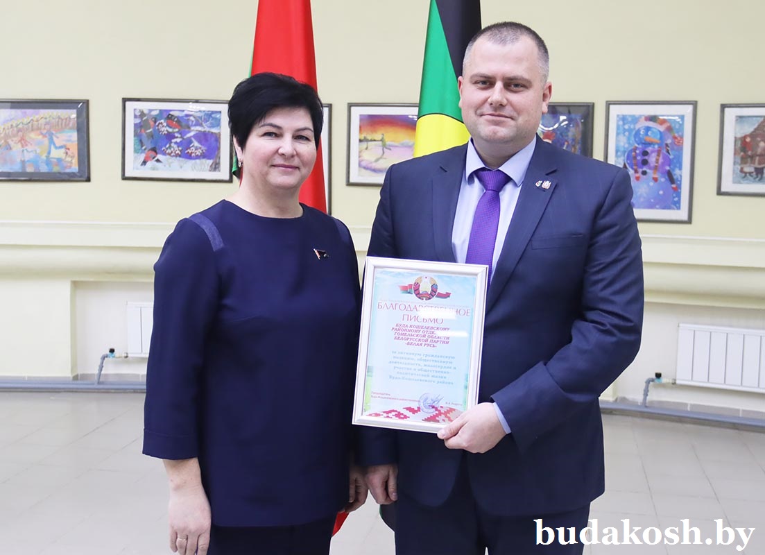 Людмила Кураликова вручила благодарственные письма райисполкома за активную гражданскую позицию, общественную деятельность, милосердие и участие в общественно-политической жизни Будакошедевщины районному отделению политической партии «Белая Русь», районным организациям РОО «Белая Русь», РОО «Патриоты Беларуси», Белорусского общества Красного Креста, ЛДПБ.