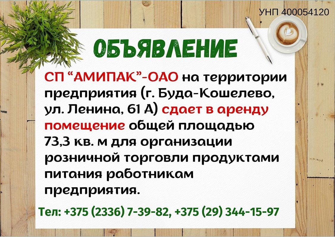 Домой Общество СП «АМИПАК»-ОАО сдает в аренду помещение ОбществоРеклама СП «АМИПАК»-ОАО сдает в аренду помещение По Авангард - 21.01.2026 396 0