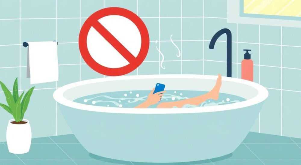 Смертельная угроза: Падение подключенного к розетке телефона/пауэрбанка в ванну практически гарантированно приведет к удару током, что зачастую приводит к летальному исходу.