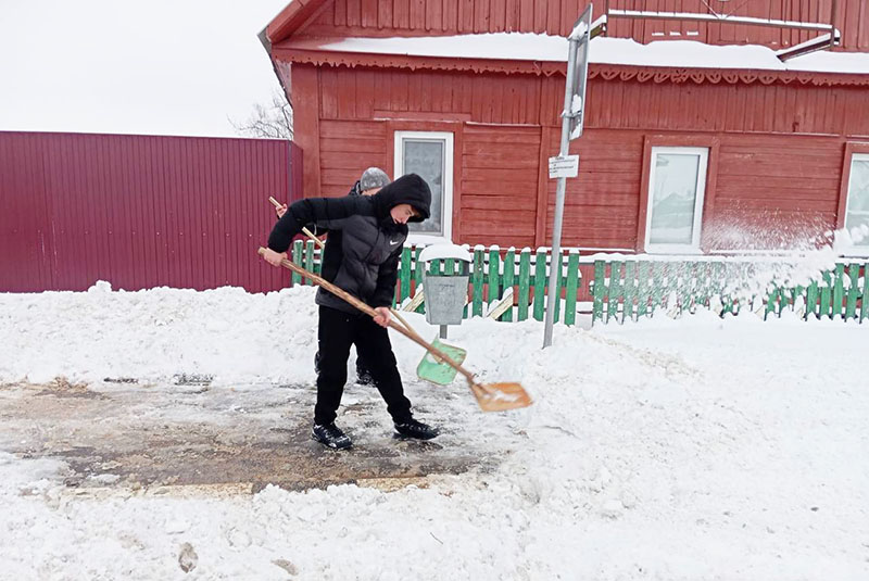 Ребята не только очищают улицы, делая их безопасными и комфортными для передвижения людей, но и с готовностью помогают пожилым людям справиться с сугробами у домов.