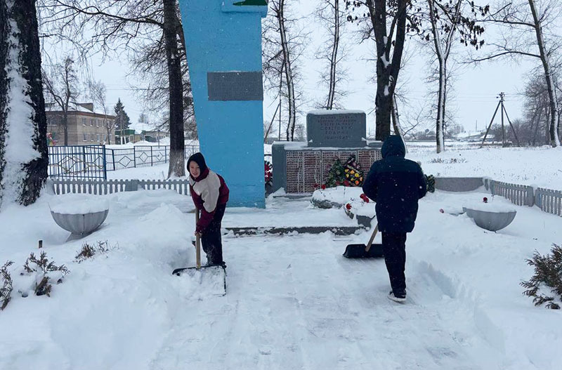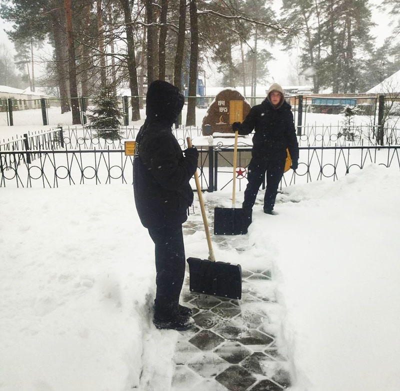 Также ребята расчищают снег у мемориалов и памятников, чтобы эти уголки памяти всегда выглядели достойно и привлекательно, напоминая всем о важности сохранения культурного наследия.