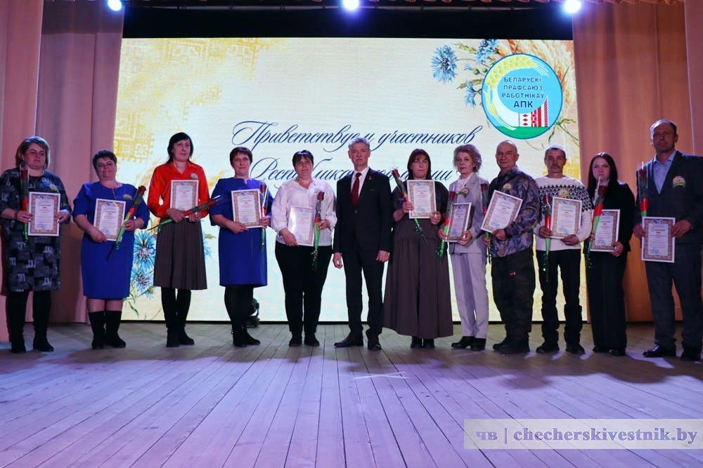 Чествование лучших представителей животноводческой отрасли Гомельщины состоялось в районном Доме культуры. С гордостью хочется отметить, что среди награжденных есть и наши землями. Благодарственных писем комитета по сельскому хозяйству и продовольствию облисполкома и областного комитета профсоюза работников АПК удостоены оператор машинного доения МТФ «Папоротное» и животновод МТК «Бушевка» СУП «Морозовичи-Агро» Надежда Бодрунова и Антонина Буслова. Благодарность Гомельского областного агропромышленного союза вручена ветеринарному фельдшеру ОАО «Экспериментальная база «Пенчин» Александру Емельянову.