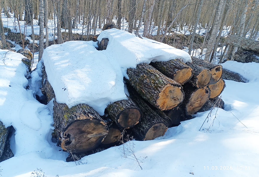 Например, в Речицком опытном лесхозе в заготовленной в 2023-2024 годах древесине дуба обнаружены трещины, гниль и грибковые поражения. С аналогичными признаками хранилась деловая древесина березы в Буда-Кошелевском опытном лесхозе. Порча деловой древесины сосны и березы выявлена на временном складе лесхозов Брестской области в г. Речица. А длительное хранение Копыльским опытным лесхозом в лесном фонде Буда-Кошелевского района деловой древесины березы привело к тому, что она превратилась в дрова.
