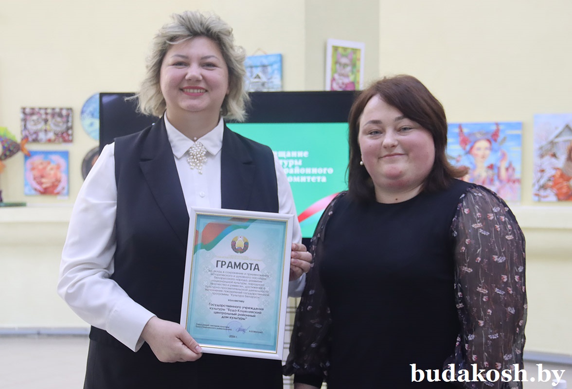 Коллектив центрального районного Дома культуры удостоен грамоты сектора культуры за вклад в сохранение и приумножение исторического и духовного наследия белорусского народа, развитие национальной культуры, народного творчества и ремесел, достижения в культурно-просветительской деятельности, выполнение показателей государственной программы «Культура Беларуси».