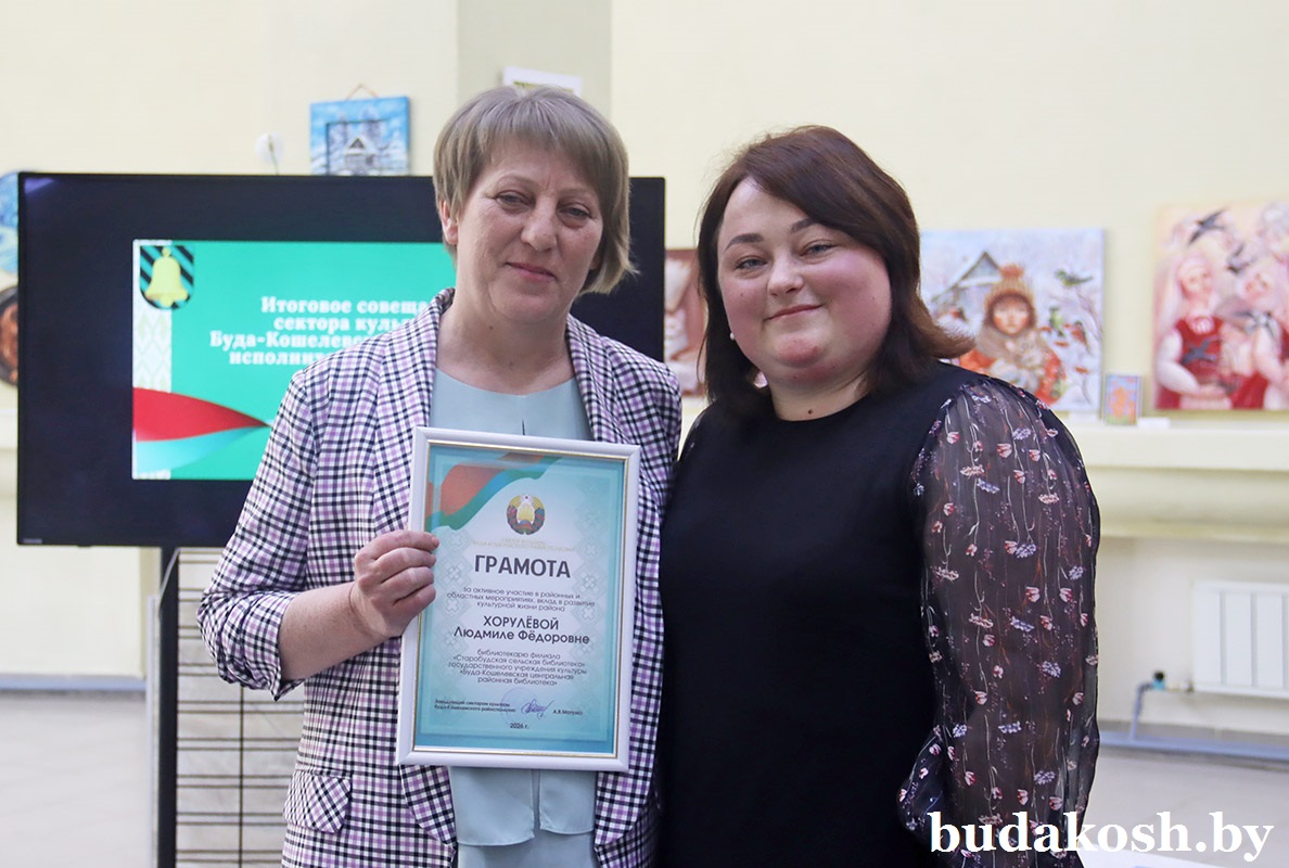 Грамотами сектора культуры также отмечены: библиотекарь Старобудской сельской библиотеки Людмила Хорулёва – за активное участие в районных и областных мероприятиях, вклад в развитие культурной жизни района; библиотекарь Губичской сельской библиотеки Екатерина Семиход – за многолетний добросовестный труд, высокий профессионализм, образцовое выполнение трудовых обязанностей, вклад в развитие библиотечного дела; библиотекарь Шарибовской сельской библиотеки Ольга Татьяненко – за высокий профессионализм, образцовое выполнение трудовых обязанностей, вклад в развитие библиотечного дела.