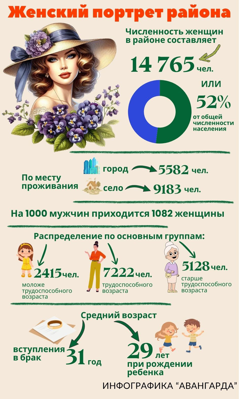 Домой Год белорусской женщины Женский портрет района Год белорусской женщиныИнфографика АвангардаНовостиОбщество Женский портрет района По Авангард - 08.03.2026 491 0