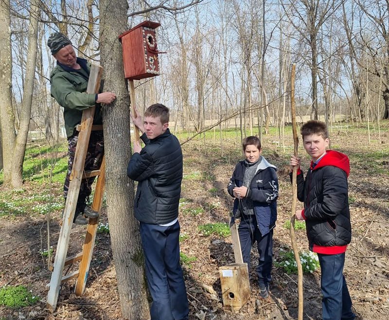 В мероприятии приняли участие председатель районного Совета депутатов Сергей Халдай, представители опытного лесхоза. Праздник получился поистине настоящим: с подарками и совместным развешиванием скворечников. Помогал развешивать домики для птиц и пенсионер лесхоза Владимир Дятел. Более 20 учащихся Рогинской школы построили скворечники. За самые красивые и креативные домики всех наградили подарками. Часть скоречников учащиеся подарили главному лесничему для размещения на экологической тропе лесхоза — Селецкой Криничке.
