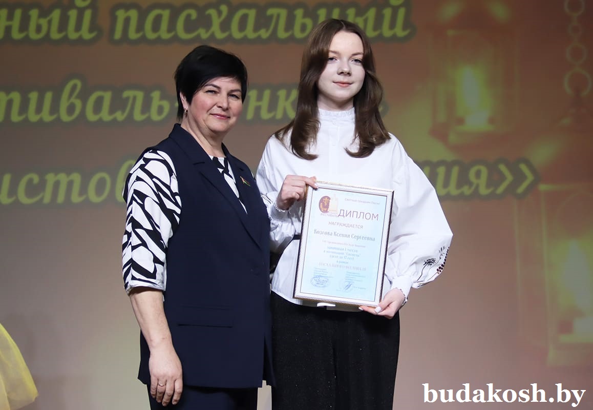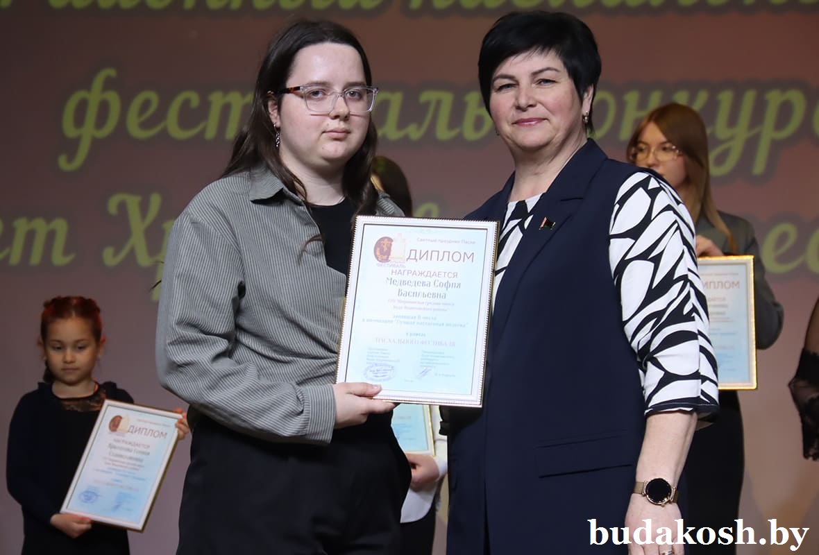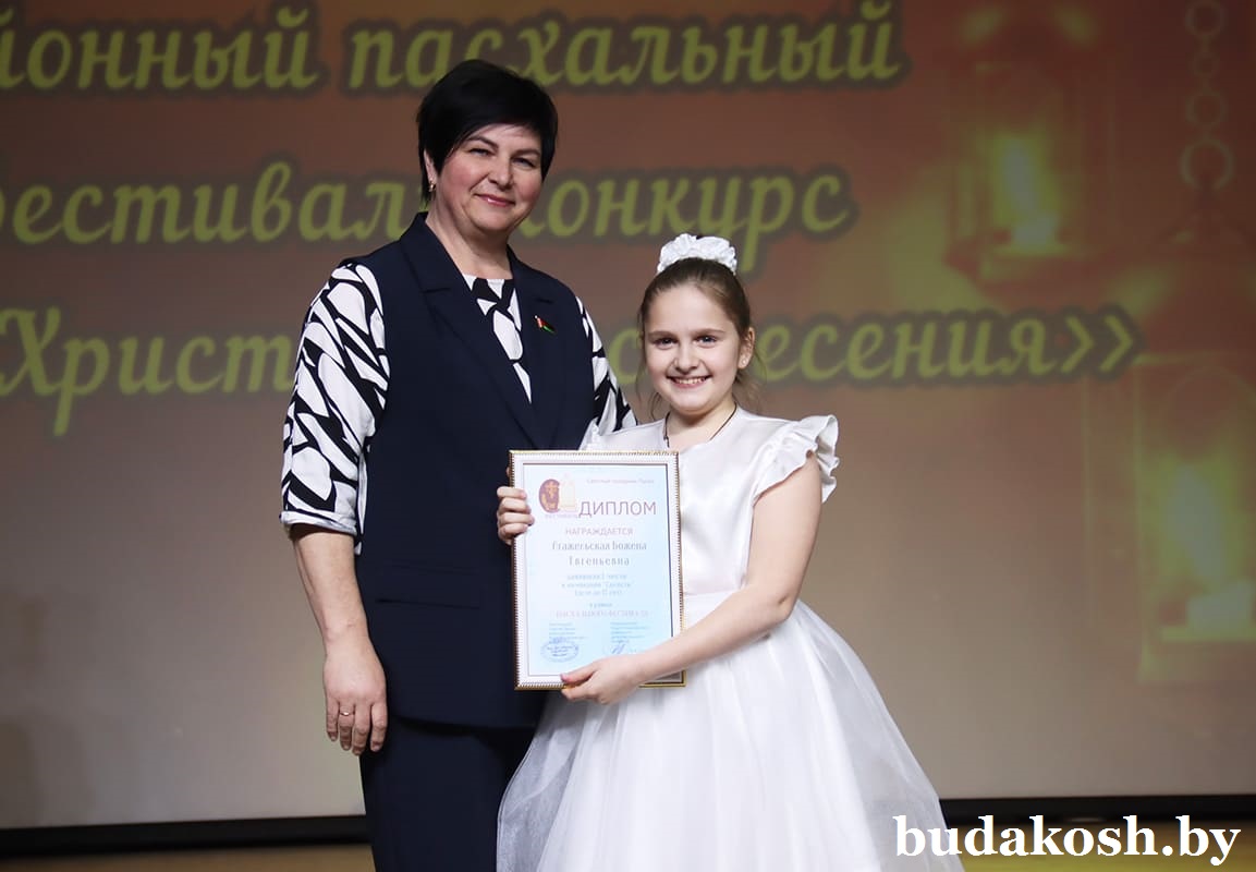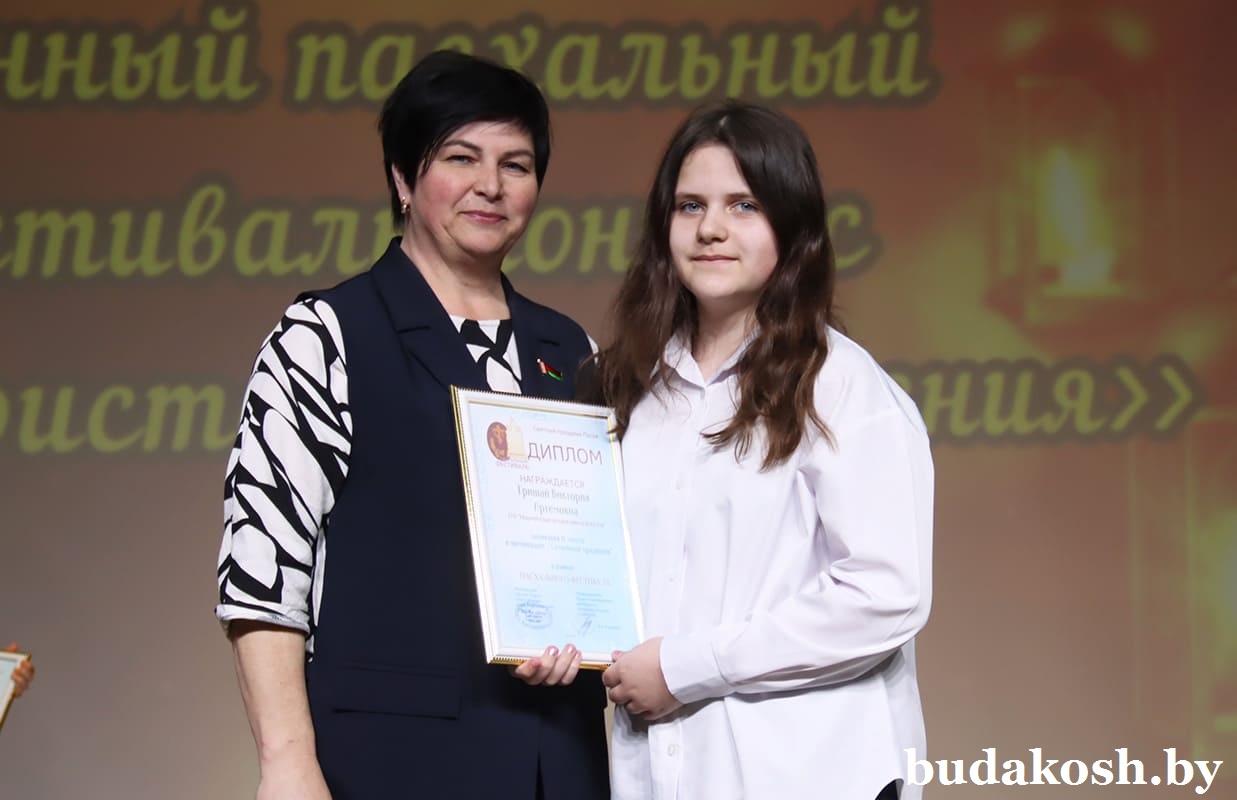 Главным моментом вечера стала церемония награждения победителей конкурса. Так, в номинации «Лучшее пасхальное яйцо» 3-е место заняла Софья Жилицкая (Уваровичский ЦДТ), 2-е – Петр Васюченко (Гусевицкий ЦТ), победу одержала Софья Лисимова (Уваровичский ЦДТ). В номинации «Семейные традиции» 3-е место завоевала Есения Крылатова (Уваровичская СШ), второй стала Виктория Гришай (Уваровичская ДШИ), первенство у Доминики Сычевой (Коммунаровский ДК).