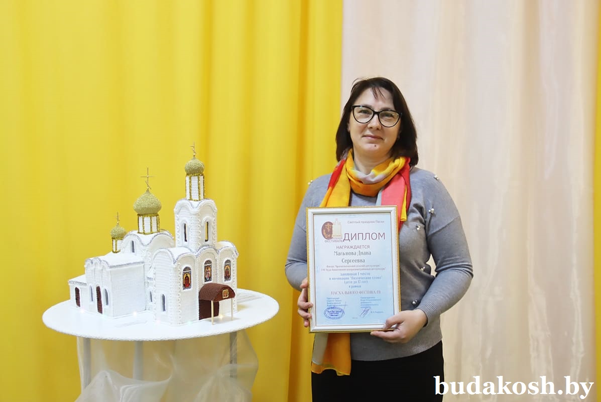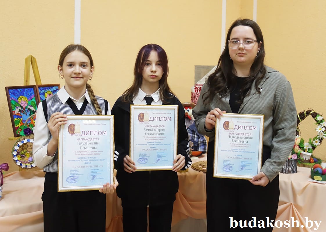 В номинации «Лучшая пасхальная поделка» 3-е место присуждено Губичскому дому ремесел, 2-е разделили учащиеся Широковской школы Екатерина Химяк и София Медведева, 1-го места удостоены Людмила Хорулева (Старобудская сельская библиотека), а также совместная работа Майи Галицкой и Евгения Телеша (Чеботовичская СШ).