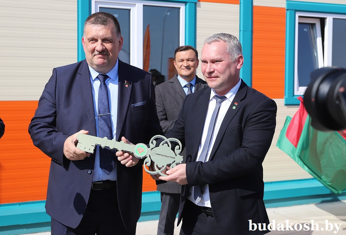 Начальник ПУ «Нефтеспецстрой» Сергей Берник передал символический ключ Николаю Балабановичу. Почетное право открыть производственный цех «Уза» было предоставлено Ивану Крупко, Валентину Ундрулю, Александру Ляхову и Николаю Балабановичу.