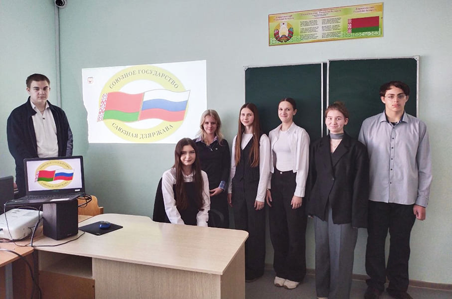 В преддверии Дня единения народов Беларуси и России на базе средней школы №1 — Школе мира райцентра в рамках международного музейного сотрудничества состоялся телемост «30-летие союзного государства» с 339-й школой г. Санкт-Петербурга.