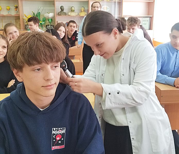 Все желающие смогли испытать на себе самые простые методы исследования во врачебной практике. Также совместно с председателем Буда-Кошелевской РО БОКК и помощником врача-гигиениста райЦГЭ в рамках областного профилактического проекта «Здоровое поведение — мой выбор» ребятам рассказали о влиянии табака, алкоголя, наркотиков на растущий организм. Особое внимание было уделено теме электронных сигарет и их пагубному воздействию на здоровье человека.