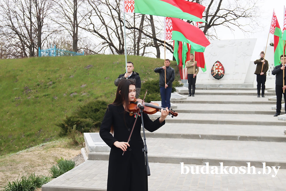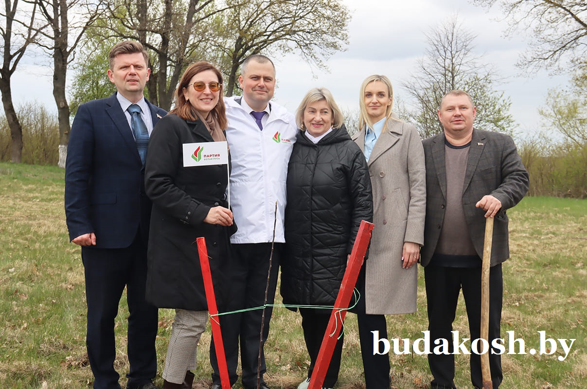 Областная патриотическая акция «Сад Победы» стартовала в прошлом году и была приурочена к 80-летию Великой Победы. Тогда, в апреле 2025-го, 80 саженцев яблонь высадили вблизи братской могилы будакошелевцы разных поколений. В этом году «Сад Победы» по инициативе партии «Белая Русь» пополнился новыми саженцами, а братская могила приобрела новый облик.