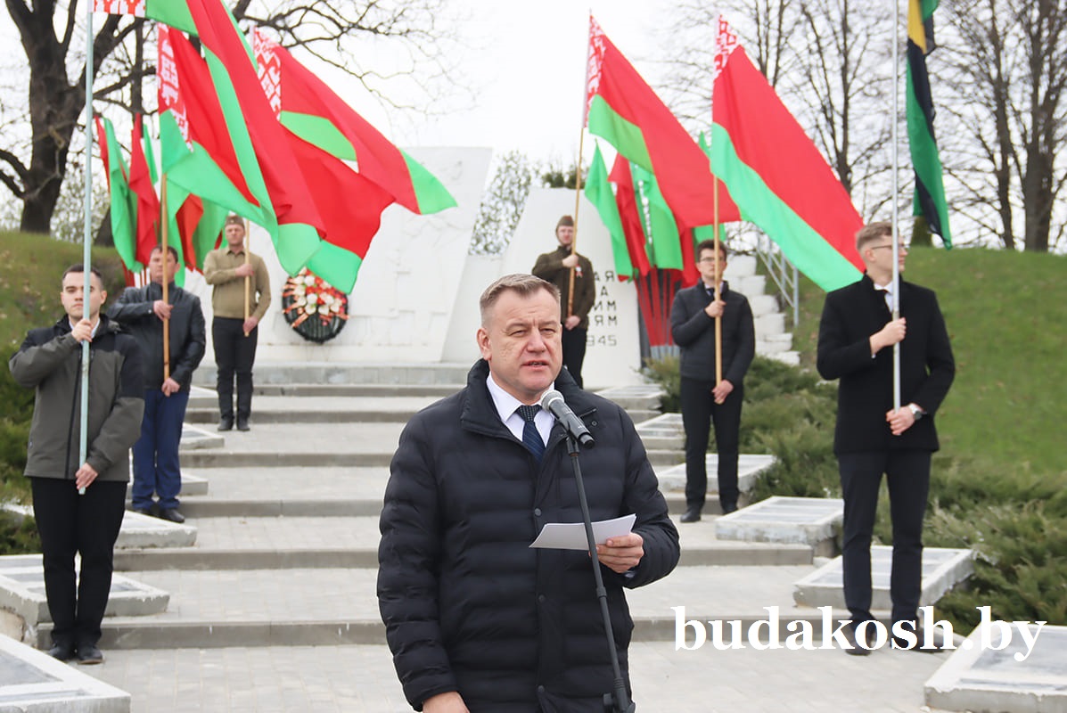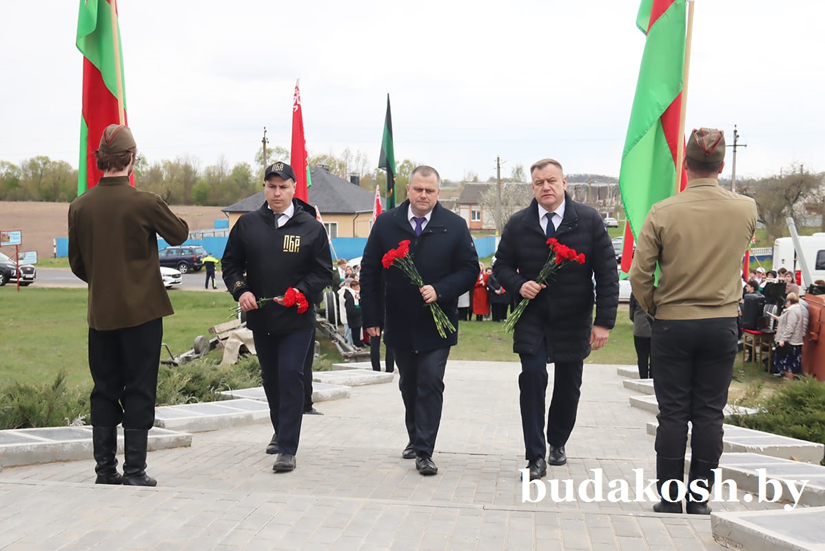 К жителям и гостям района обратился Артем Гришай: «Накануне 81-й годовщины Великой Победы мы собрались на этом памятном месте в рамках областной акции Гомельского областного отделения Белорусской партии «Белая Русь» «Сад Великой Победы». Впереди знаковая дата для всего белорусского народа, для тех, кто чтит память героев Великой Отечественной войны, ведь сохранение исторической памяти очень важно для будущих поколений. Символично проведение патриотической акции на этом священном месте, где увековечена память о 399 жителях городского поселка Уваровичи, отдавших жизнь за свободу и независимость нашей Родины в Великой Отечественной войне, на месте, которое внесено в десятку памятных исторических мест района. В то время, когда в Европе безжалостно разрушают памятники советских солдатам, которые ее освободили, мы приумножаем и сохраняем память о великом подвиге нашего народа. Пусть сад Победы, высаженный руками патриотов страны, станет символом того, что подвиг наших предков никогда не будет забыт, а их корни, как и наша память, будут крепко держаться за родную землю». От имени районного исполнительного комитета, районного Совета депутатов Артем Сергеевич поблагодарил всех, кто принимает участие в акции, и пожелал прежде всего крепкого здоровья, счастья, благополучия, мирного неба.