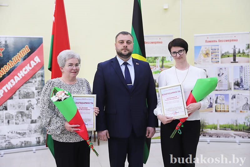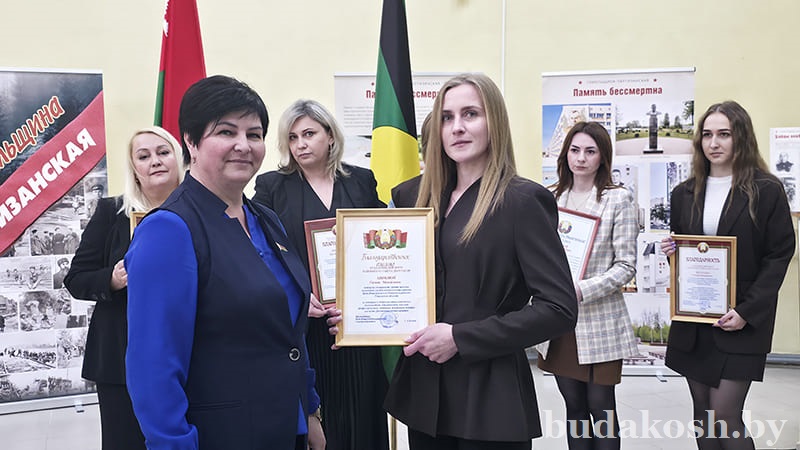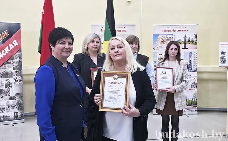Благодарности Буда-Кошелевского районного исполнительного комитета за многолетний добросовестный труд, успешное исполнение должностных обязанностей, высокий профессионализм, активную жизненную позицию и в честь Дня военных комиссариатов объявлены начальнику секретной части Наталье Малашенко, за значимый вклад в достижение положительных результатов служебной деятельности, выполнение задач по предназначению и мобилизационной работе по воинскому учету прапорщиков, сержантов и солдат и в честь Дня военных комиссариатов – ведущему специалисту мобилизационной группы Ирине Прокопенко.
