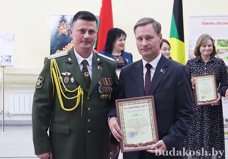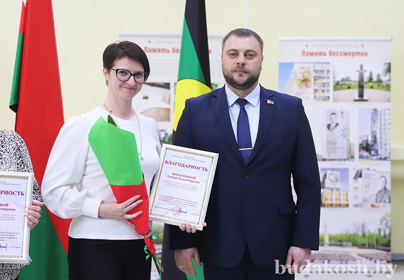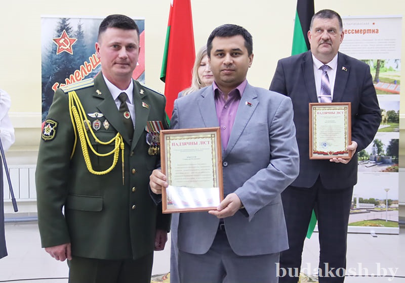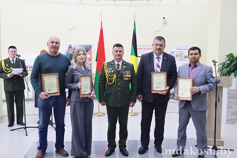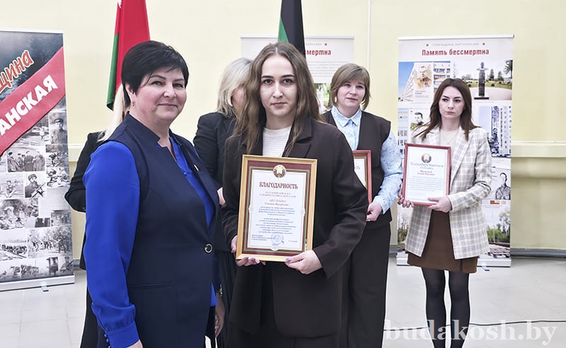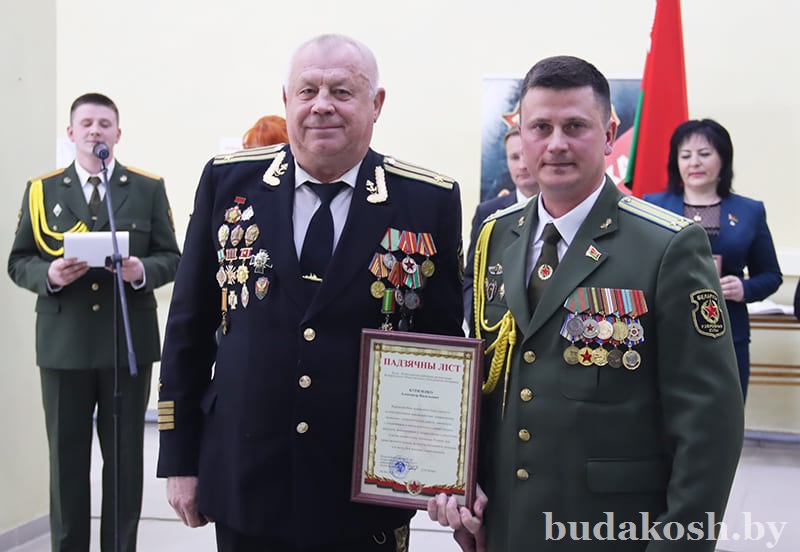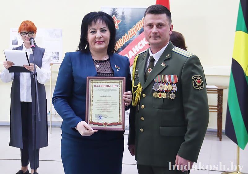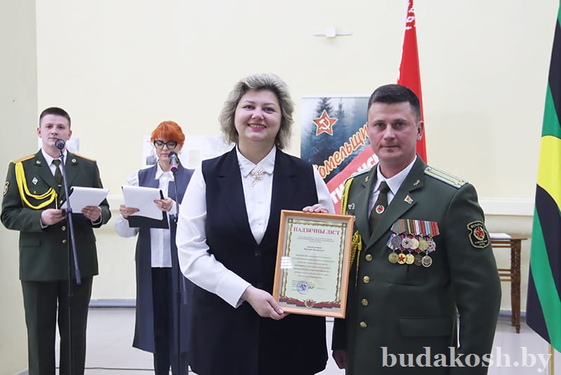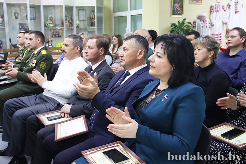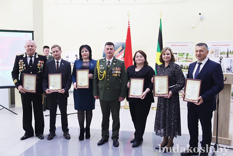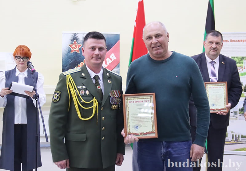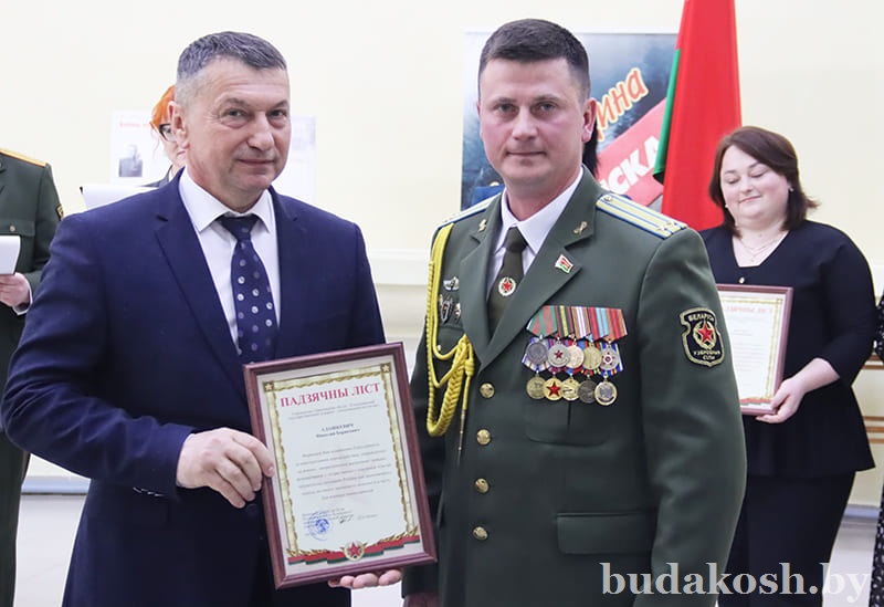 Благодарственные письма военного комиссара Буда-Кошелевского и Чечерского районов вручены: за качественную организацию и ведение воинского учета военнообязанных и граждан, подлежащих призыву на срочную военную службу, – антикризисному управляющему СП «АМИПАК»-ОАО Валентине Жуковой, директору РУП «Белоруснефть-Особино» — Николаю Балабановичу, директору ГОЛХУ «Буда-Кошелевский опытный лесхоз» Сергею Лозко; за поддержание технической готовности транспортных средств и качественное выполнение работы военно- транспортной обязанности – главному врачу учреждения здравоохранения «Буда-Кошелевская центральная районная больница» Станиславу Крылатову, директору общества с дополнительной ответственностью «Агротехкомплект» Александру Грищенко; за тесное и конструктивное взаимодействие, активную работу, направленную на военно-патриотическое воспитание молодого поколения, увековечение памяти погибших при защите Отечества – заведующему сектором культуры райисполкома, председателю районного отделения общественной организации «Белорусский союз женщин» Анне Матузко, директору начальной школы г. Буда-Кошелево, председателю районной организации РОО «Белая Русь» Татьяне Чечко, директору историко-культурного центра района Светлане Авсянниковой, директору аграрно-технического колледжа Николаю Адашкевичу, директору КЖУП «Буда-Кошелевский коммунальник» Евгению Новику, председателю районного совета ветеранов Александру Куриленко.