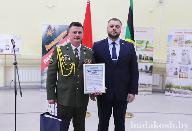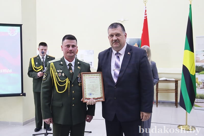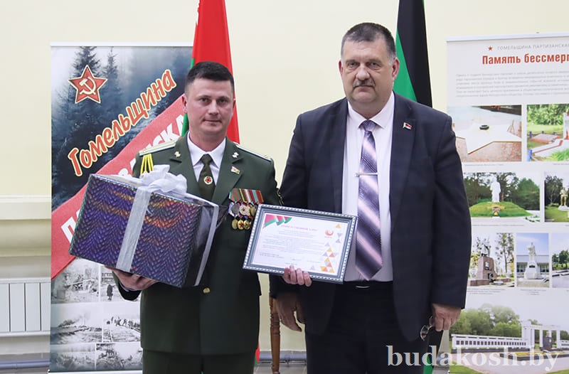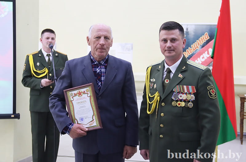 Военный комиссар Буда-Кошелевского и Чечерского районов подполковник Денис Монит продолжил церемонию награждения. За многолетний добросовестный труд, успешное и добросовестное исполнение должностных обязанностей и в честь Дня военных комиссариатов грамотой военного комиссара Буда-Кошелевского и Чечерского районов награжден сторож Василий Тимошенко.