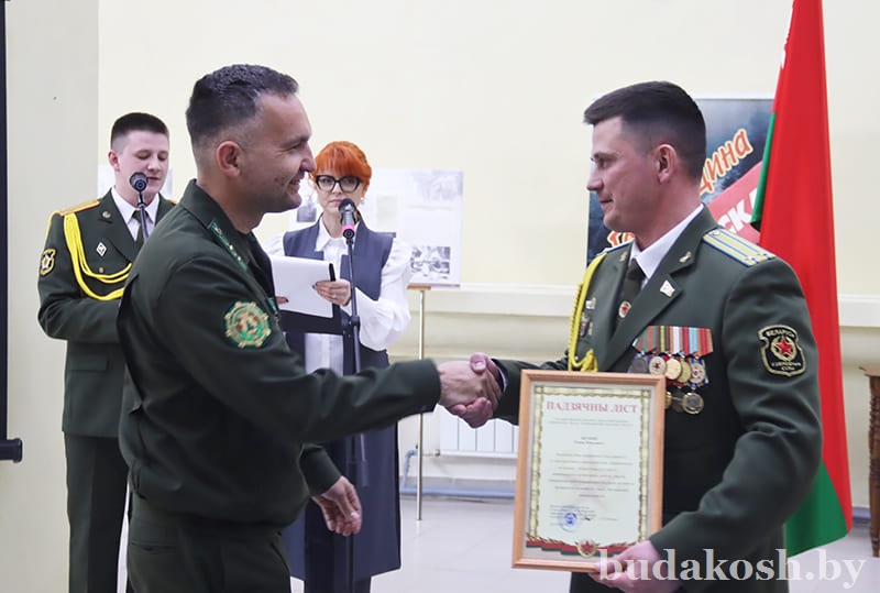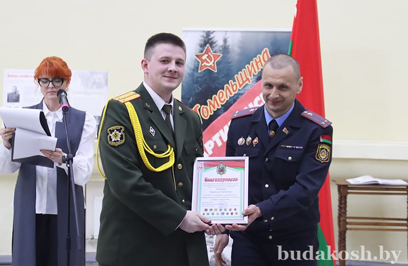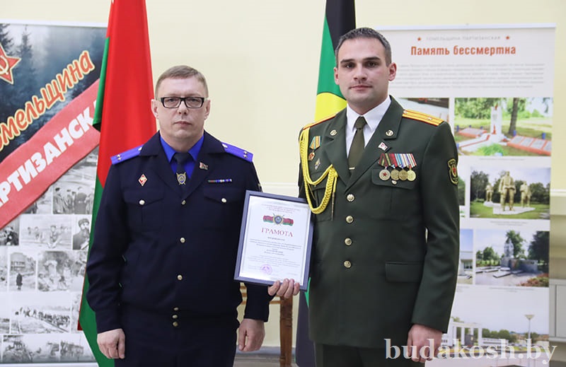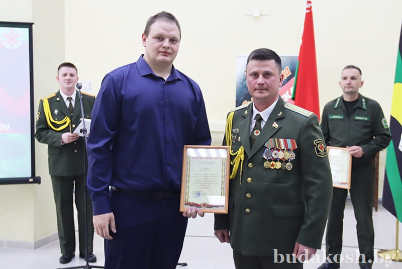 Руководители силовых структур вручили награды отличившимся. Грамоты РОСК вручены заместителю военного комиссара по территориальной обороне майору Владиславу Дорофейскому, ведущему специалисту мобилизационной группы Наталье Палубец. Благодарности ОВД райисполкома объявлены начальнику группы территориальной обороны старшему лейтенанту Кириллу Горелову, начальнику группы призыва на военную службу лейтенанту Артему Мещанинову.