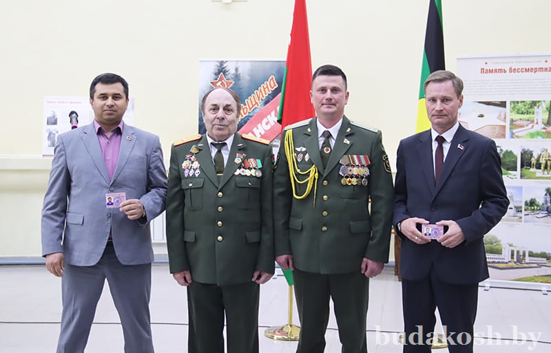 Председатель районной организации ОО «Белорусский союз офицеров», майор в отставке Сергей Маслов вручил членские билеты Белорусского союза офицеров лейтенанту запаса Станиславу Крылатову и майору запаса Евгению Новику.